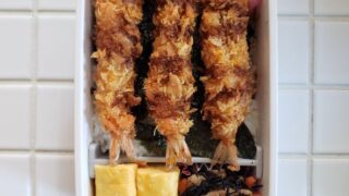 苦痛に満ちた男子高校生のための手作り弁当の記録、397日目。No.397:2026年4月16日のメニューはエビフライ。